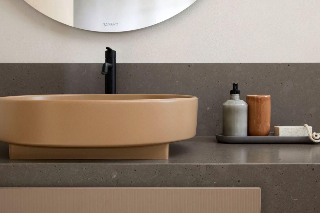 Patricia Urquiola zaprojektowała umywalkę, która harmonijnie wpisuje się w nowoczesne łazienki – z miękką gliną, matowym wykończeniem i detalem, który zaprasza do spokoju.